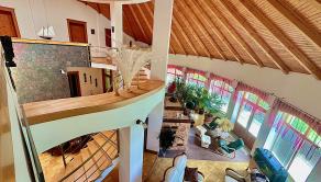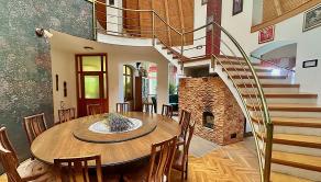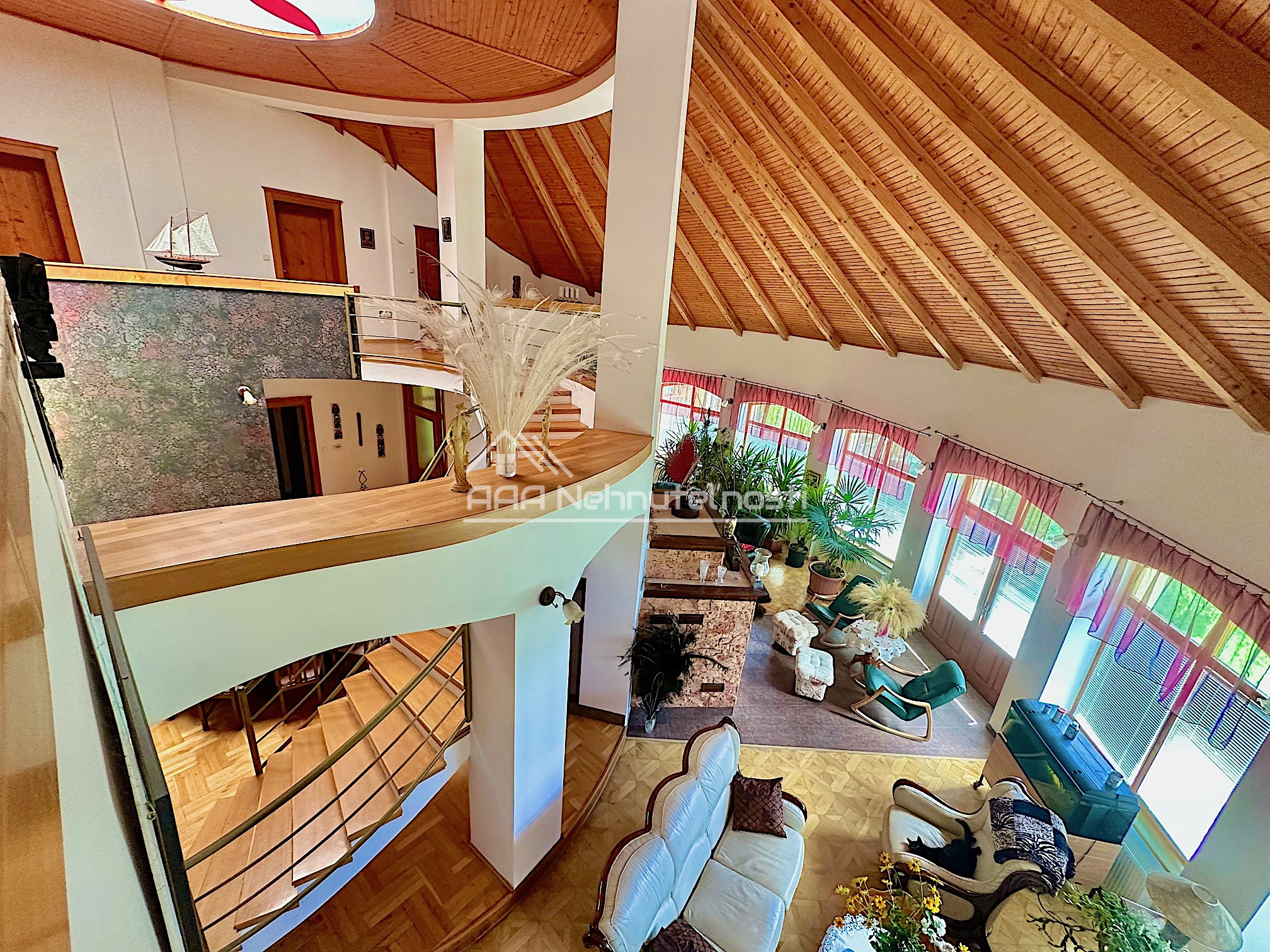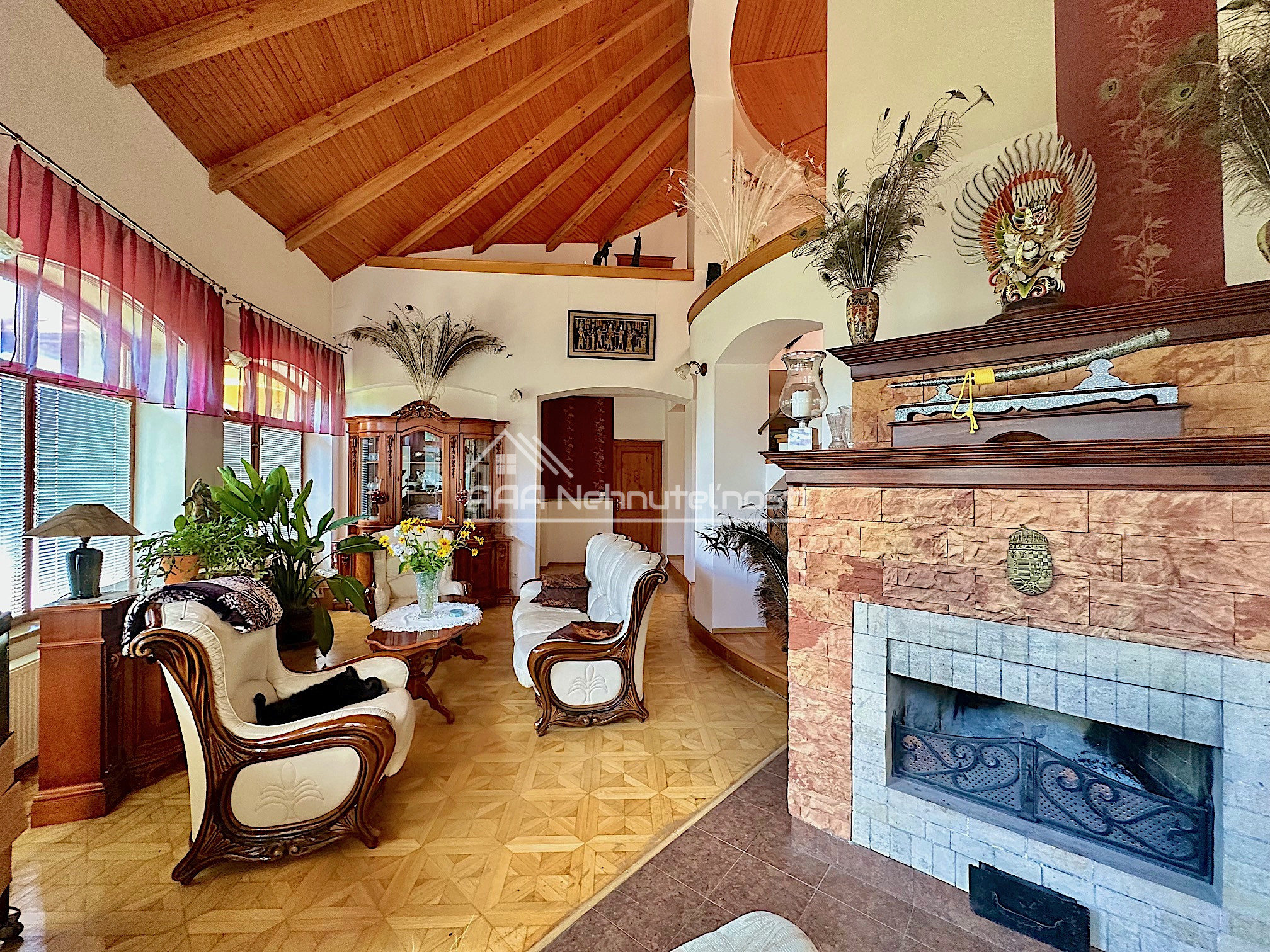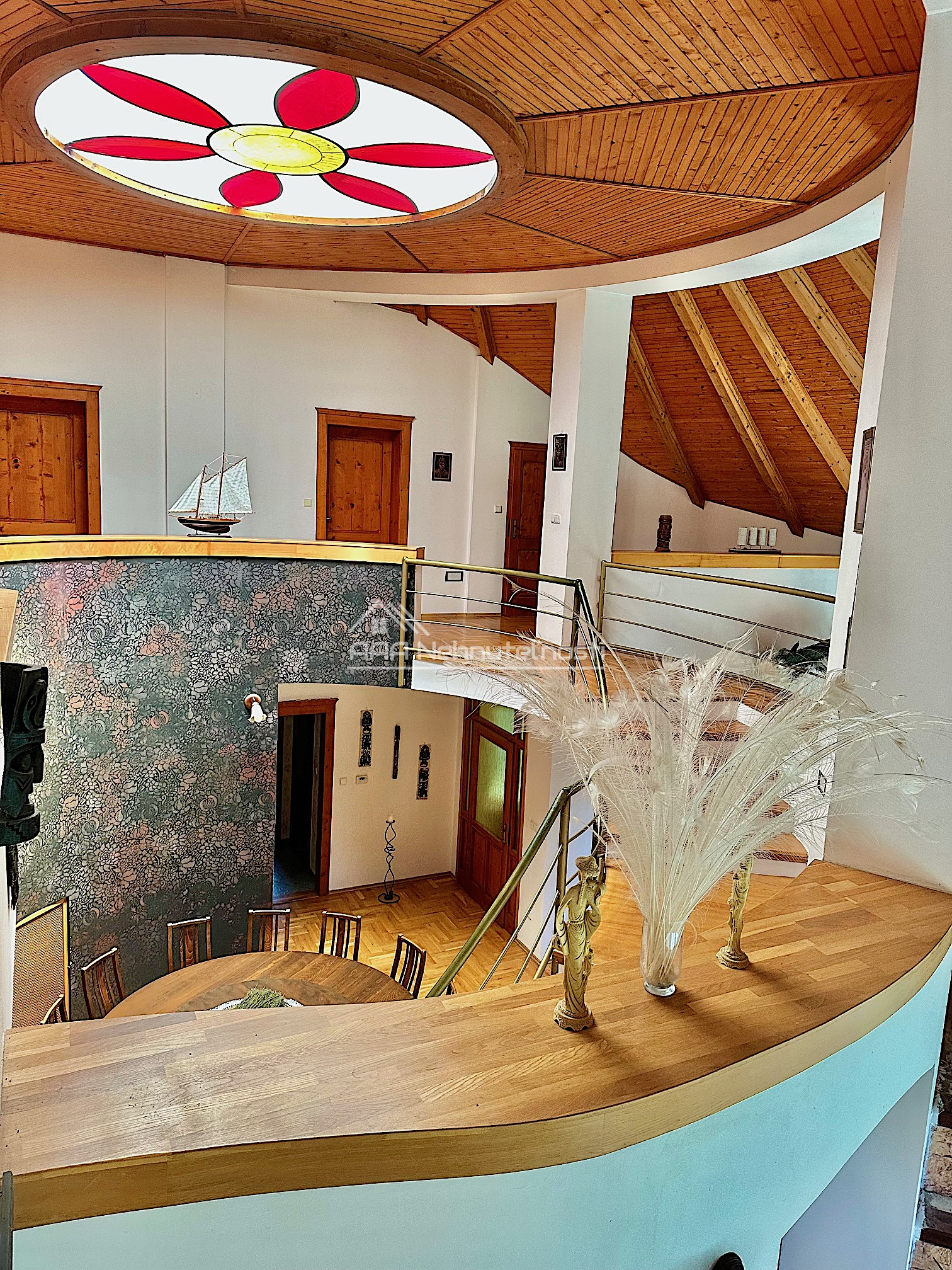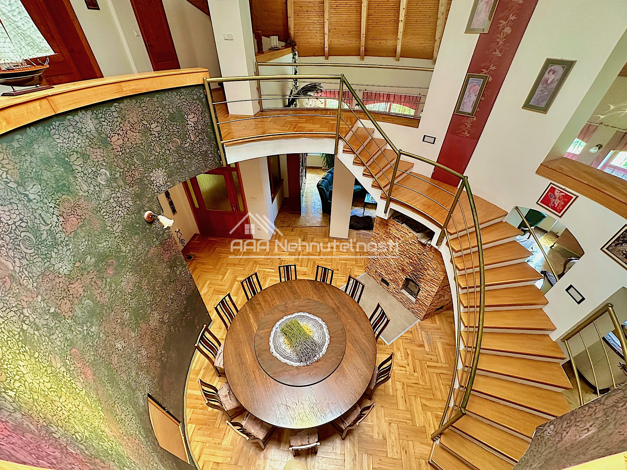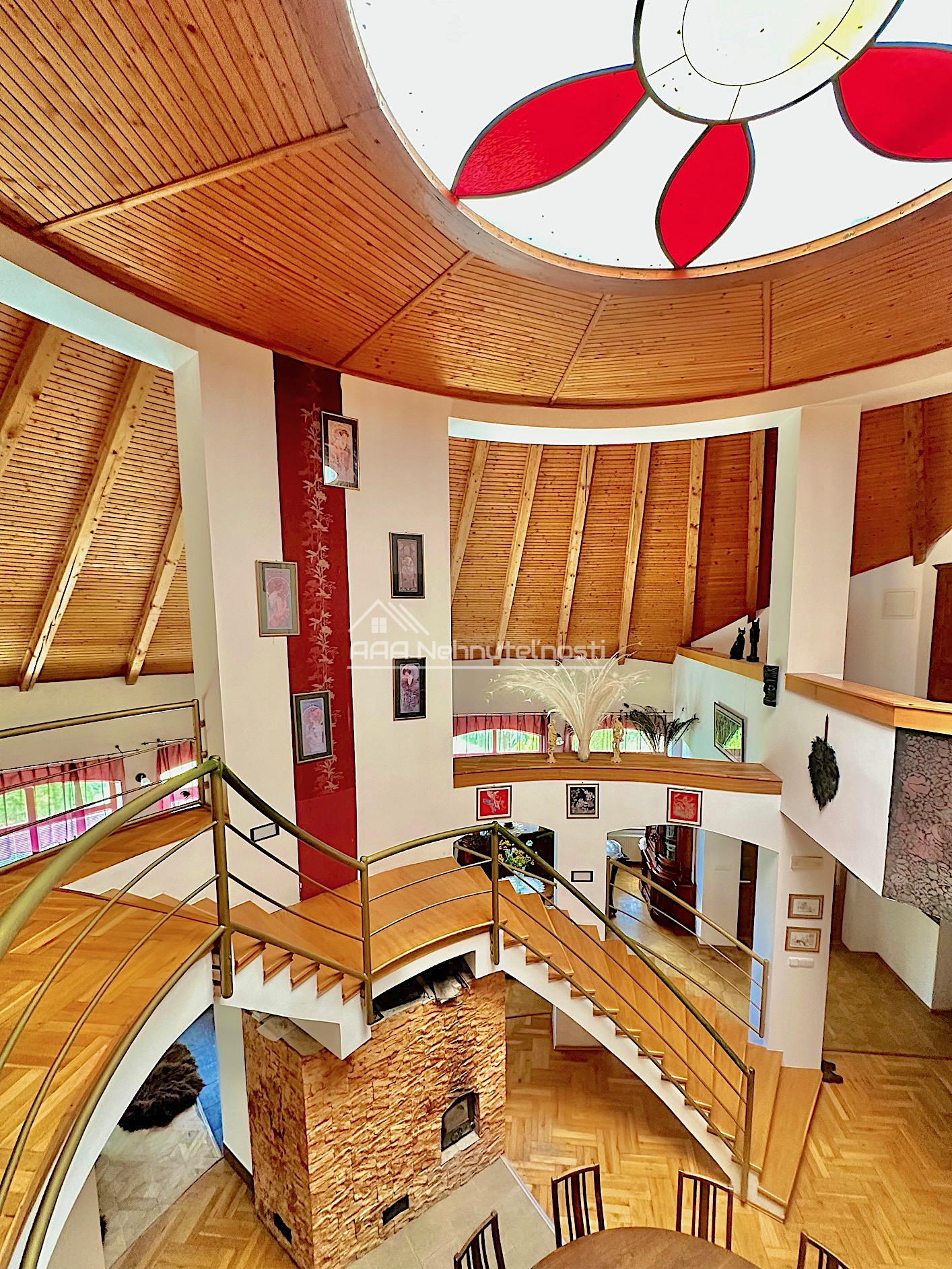 Dom je postavený z prírodných materiálov podľa pravidiel Feng shui, má 3 podlažia o celkovej veľkosti 550 m2 a je situovaný na pozemku o rozlohe 5.100 m2. Dom je pripojený na kompletné inžinierske siete, voda, elektrina, plyn a kanalizácia. Taktiež na pozemku je vlastná studňa a čistička. Vykurovanie v celom dome zabezpečuje vnútorný krb a plynový kotol.