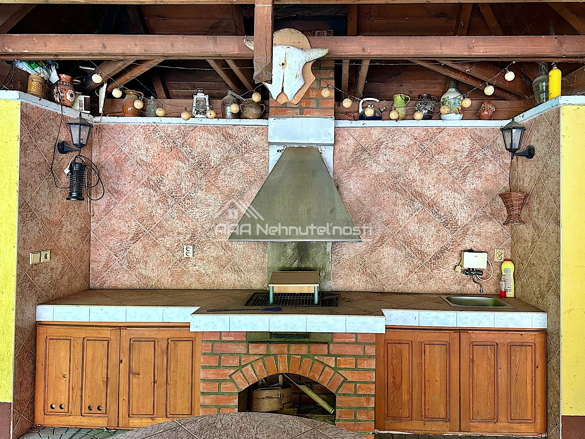 Na pozemku sa nachádza altánok s krbom a veľkou pecou, samostatná pivnica na zeleninu a víno, samostatná dielňa, jazierko s kaprami a veľká botanická záhrada s rôznymi stromami (figa, kiwi, hurmikaki, moruša, japonská čerešňa, jablone, hrušky, bambusy, rôzne ihličnaté stromy, kríky a bilinky...).